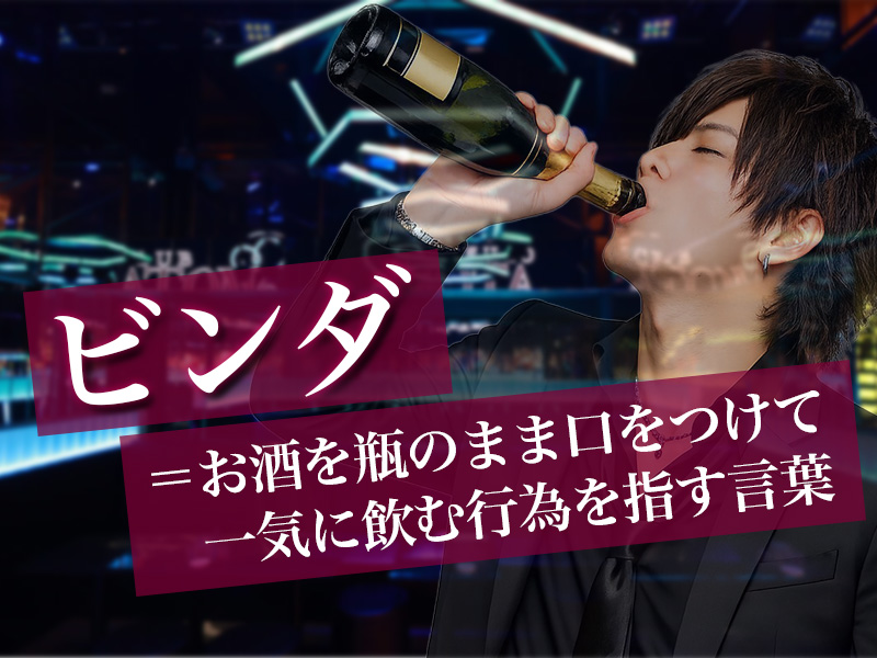 ビンダとは、お酒をボトル(瓶)のまま口をつけて一気に飲む行為を指す言葉です。