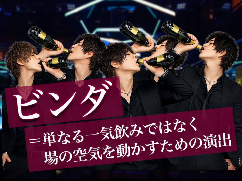 ホストクラブにおいてビンダは、単なる一気飲みではなく、特定の場面で行われる演出行為として位置づけられています。