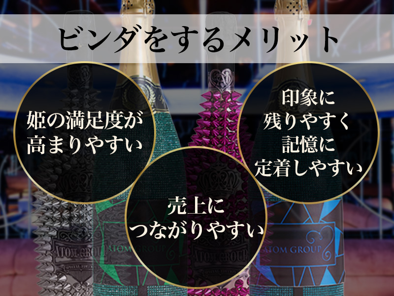 ビンダは、シャンパンを入れてくれたお客様に対して、「その行為が特別である」と伝えやすいパフォーマンスです。